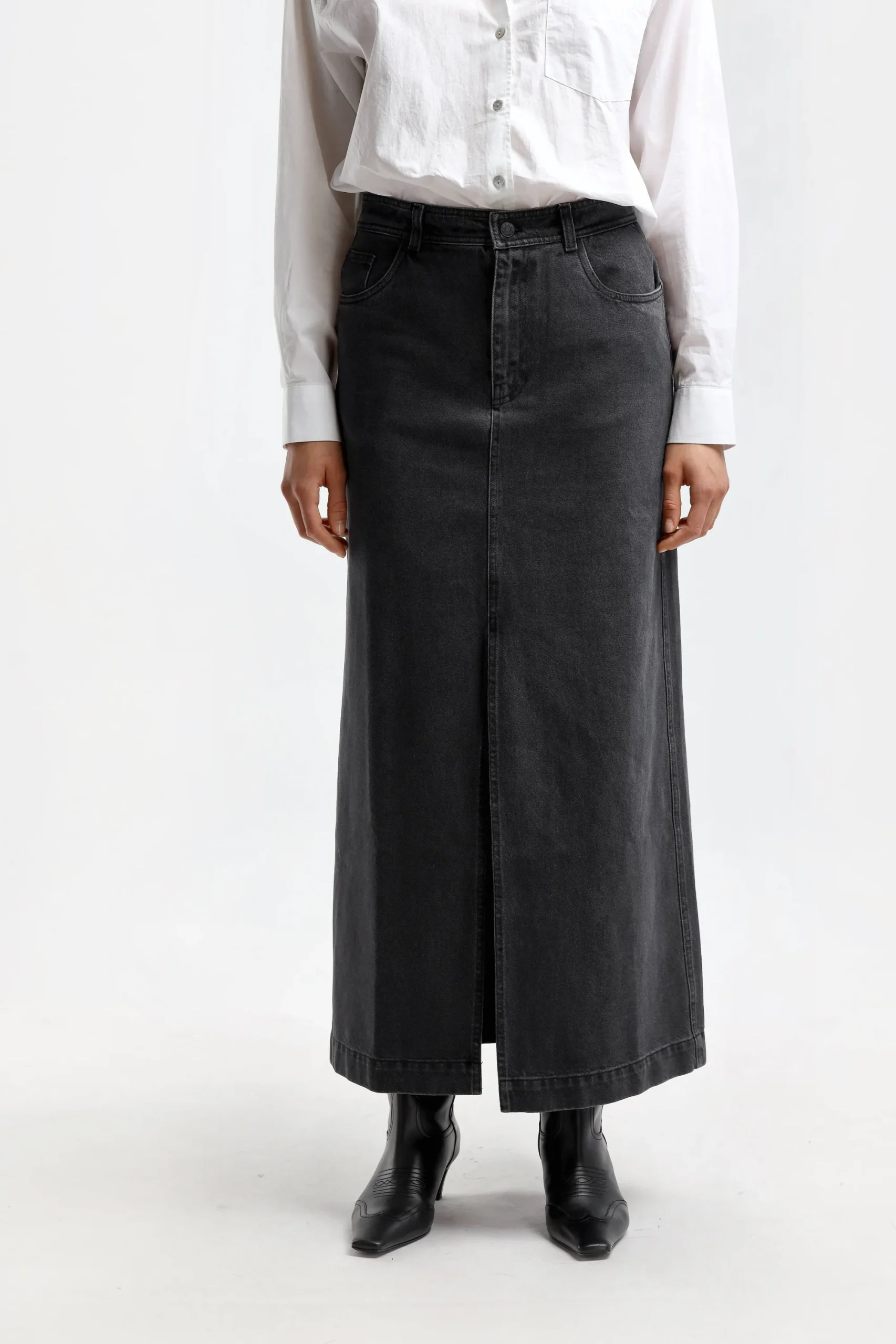 - Jupe En Jean Classic En Noir Delave