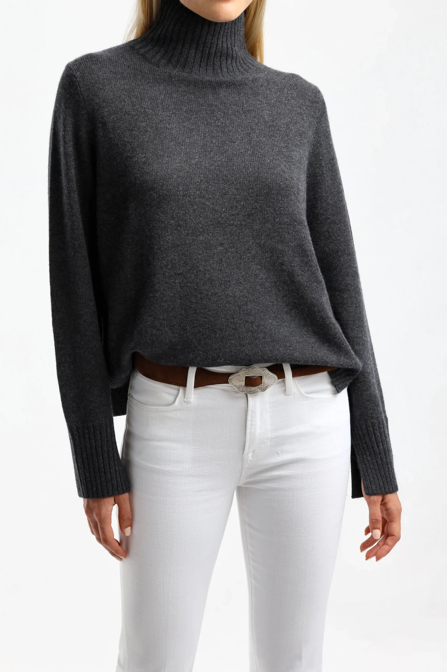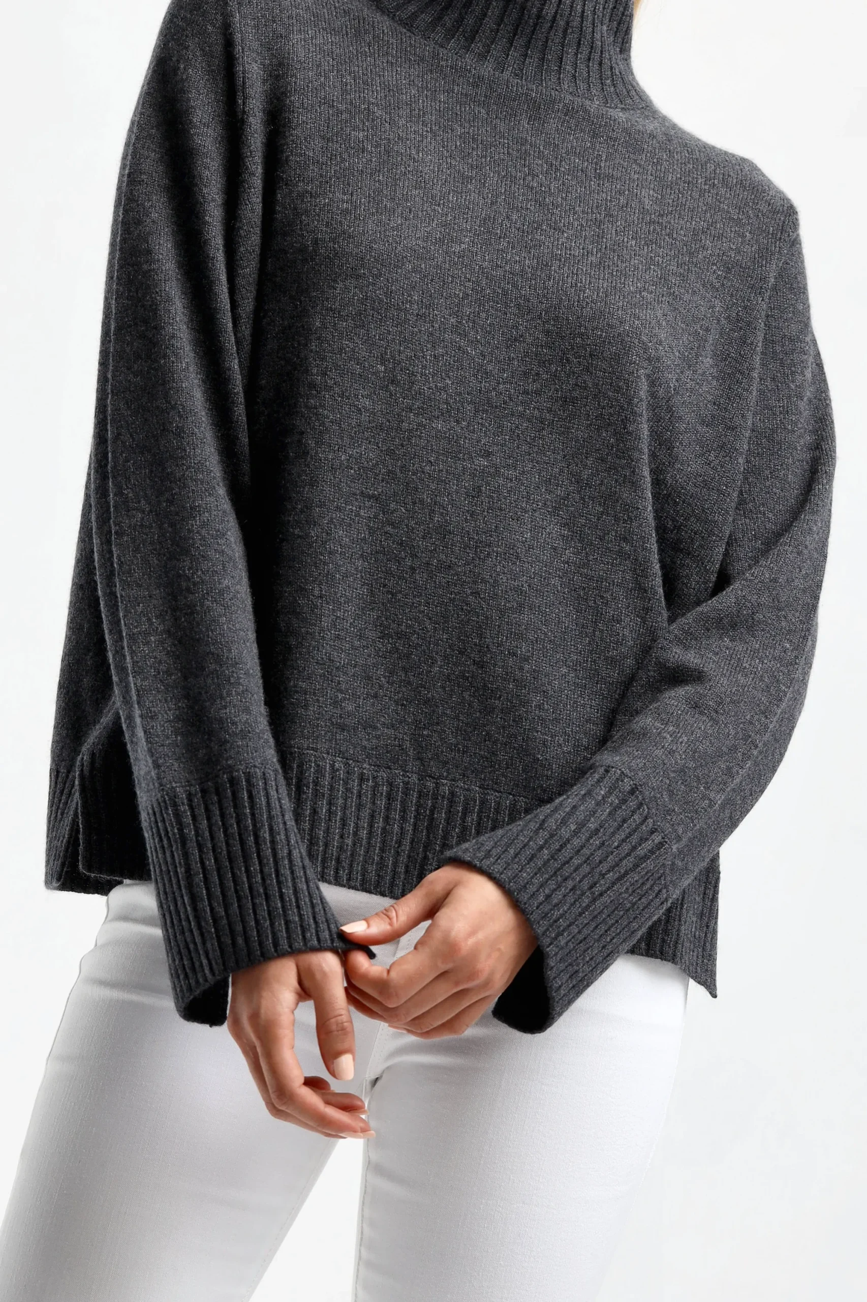 - Pull A Col Roule Gris Fonce