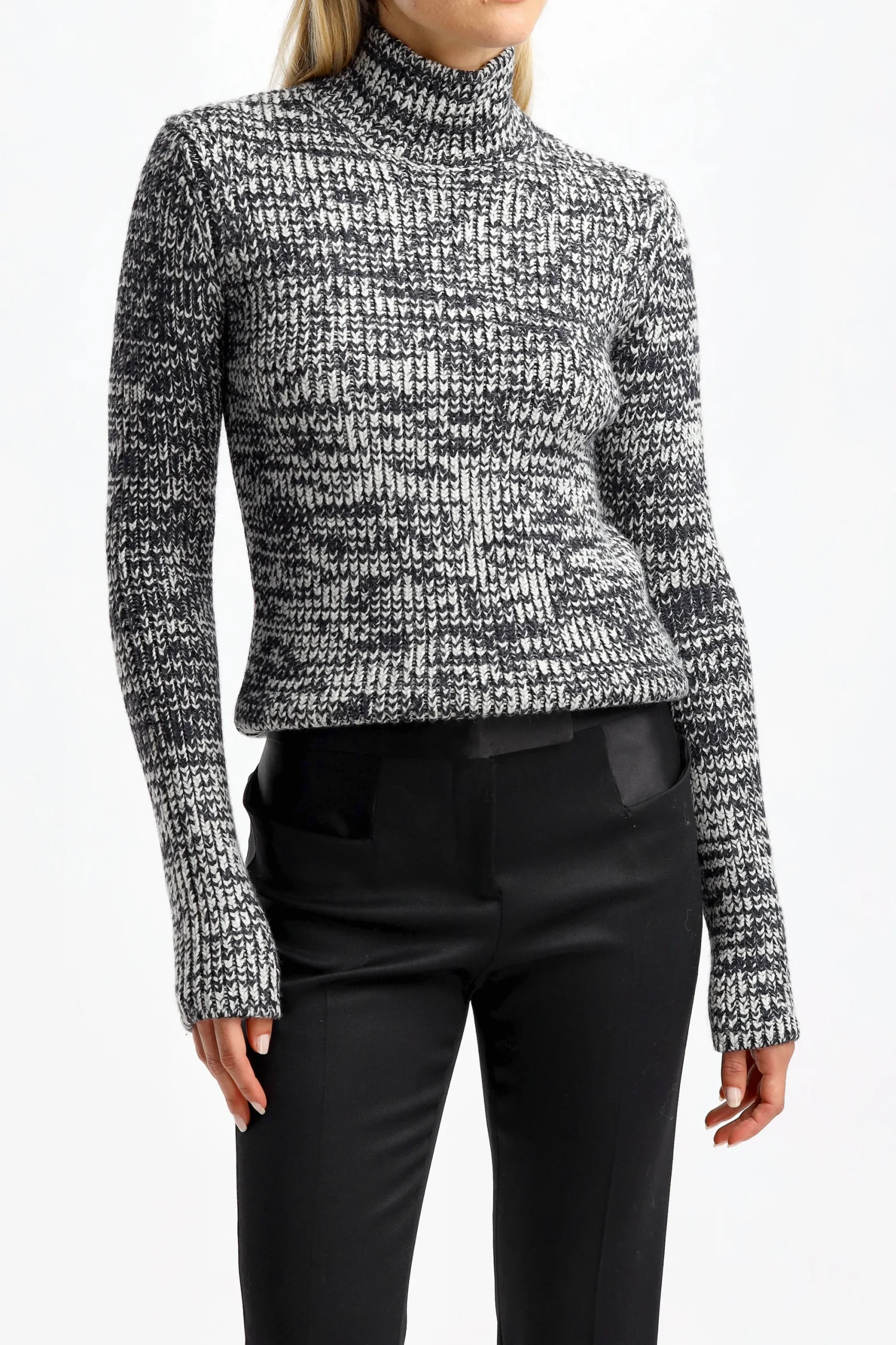 - Pull A Col Roule En Chalk/Noir